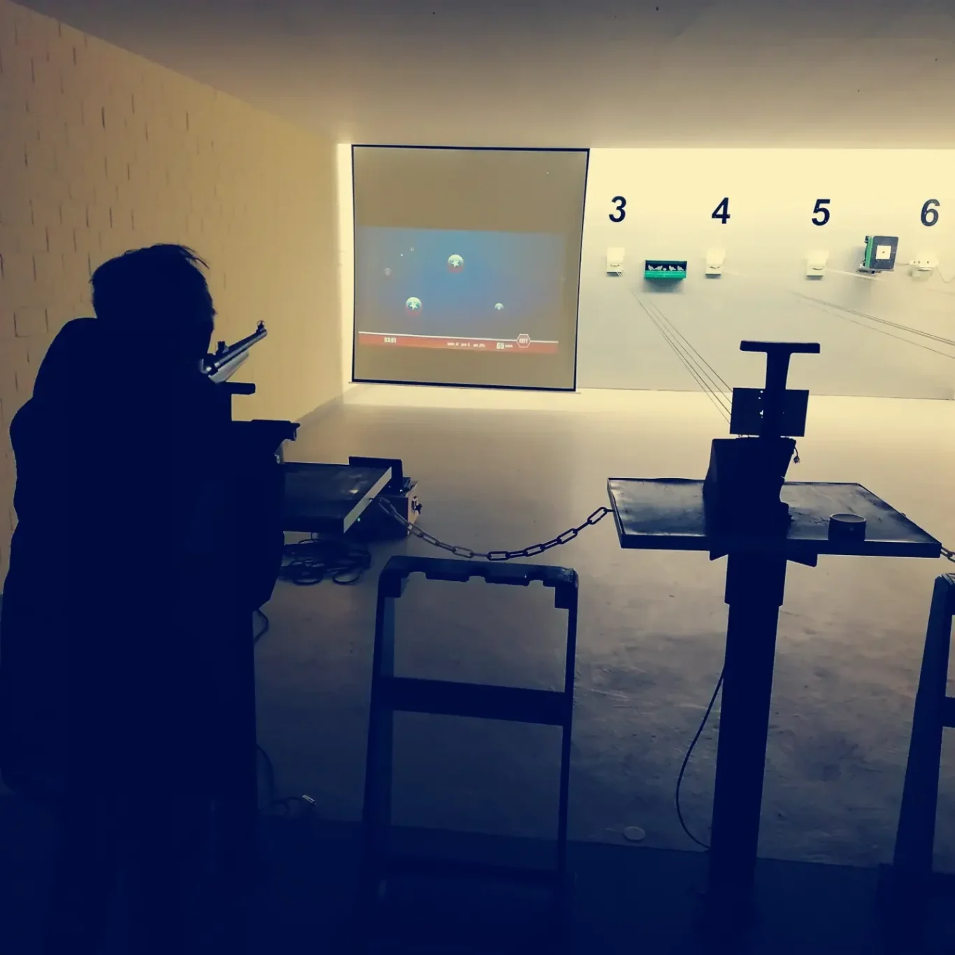 Wir verfügen über eine sogenannte Lichtpunktschießanlage, die ganz ohne Munition funktiniert und damit für Kinder ab 6 Jahren geeignet ist.