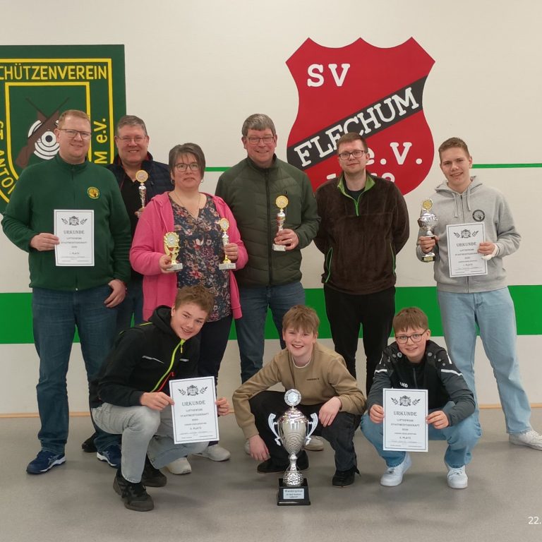 Am 21./22. März fand die Stadtmeisterschaft Luftgewehr der Stadt Haselünne in Flechum statt. Am Ende konnten wir uns gegen die weiteren geladenen Vereine mit 262,8 Ringen durchsetzen.